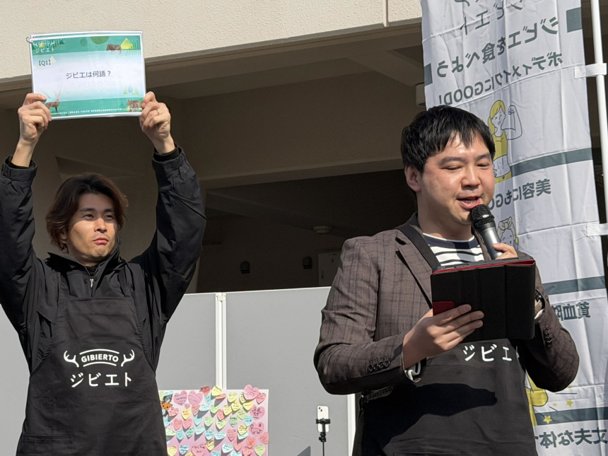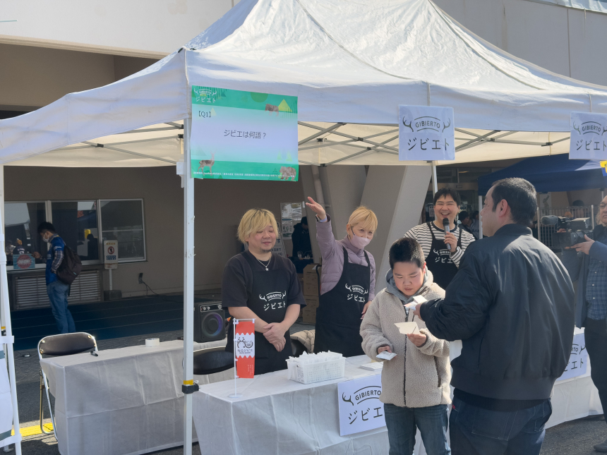 ブースではMCによる呼び込みが行われ、足を止めて参加を決める来場者の姿が多く見られました。クイズの問題は見つけにくい場所に掲示していたものもあり、「探すのに苦戦した」という声も。それでも「勉強になった」「ジビエについて知らなかったことがわかった」と、楽しみながら学べる仕掛けが好評でした。