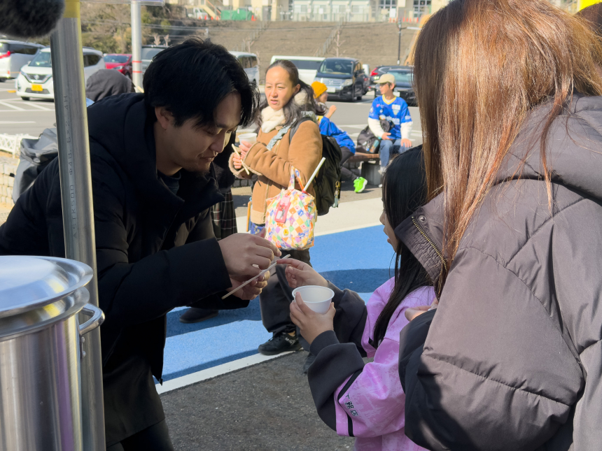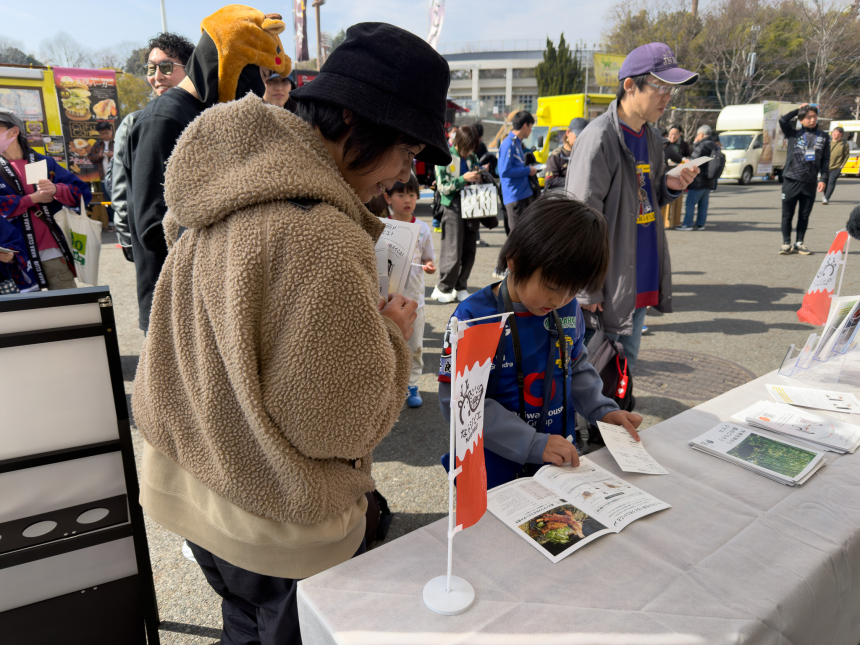 サッカーの試合を楽しみに来た来場者が、クイズハンティングを通じてジビエの栄養価や安全性を自然に学び、実際に猪汁を味わうことで、ジビエに関心を持ってもらうことができたイベントとなりました。