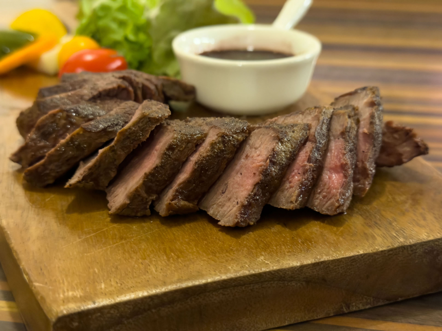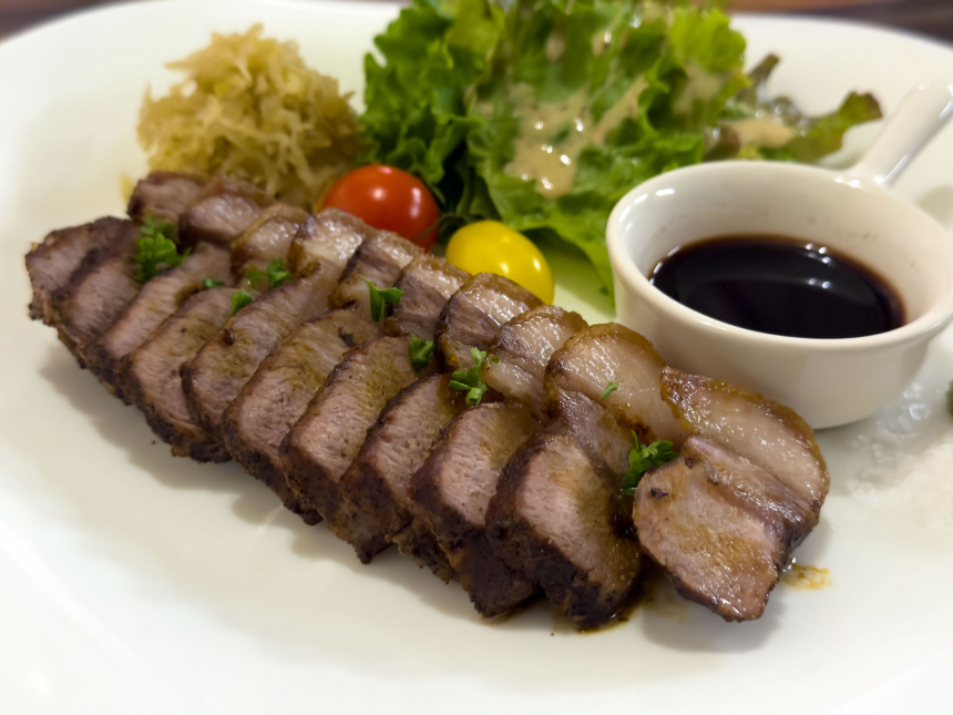 きまぐれうさぎのメニューのなかで欠かせないものが、「いのししロースのグリル」(150g:1,790円、200g:2,380円・税込)です。千葉県の「ちばの醤油グルメフェア2025」でも看板メニューとして紹介される一品で、房総ジビエのいのししロースが通年で提供されています。