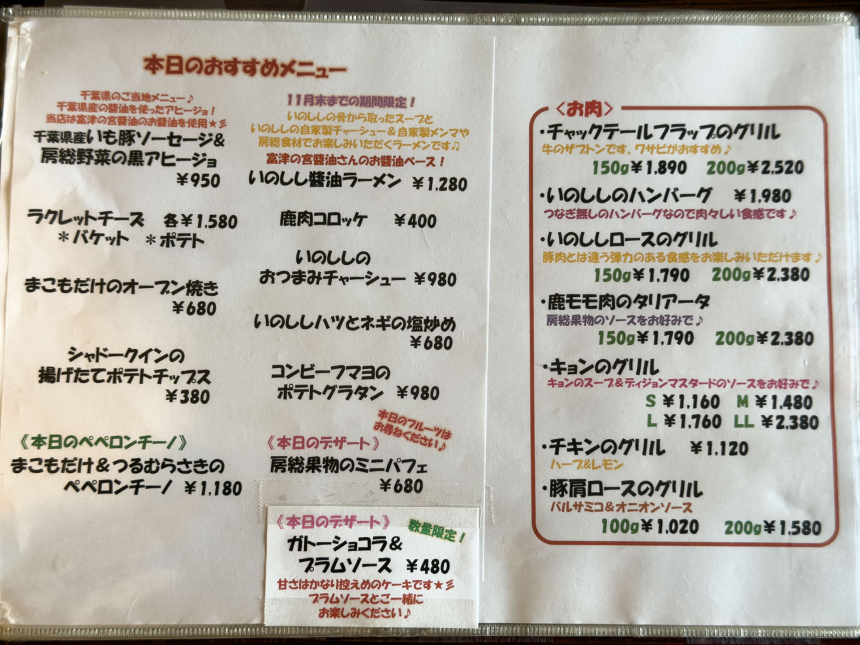 二度目以降は、千葉県内のフェアやジビエイベントと連動した限定メニューを狙うのも良いでしょう。前述したいのしし醤油ラーメンやジビエ担々麺など、期間限定の一杯は、稲垣さんの「千葉しばり」の遊び心がもっとも強く表れているメニューでもあります。