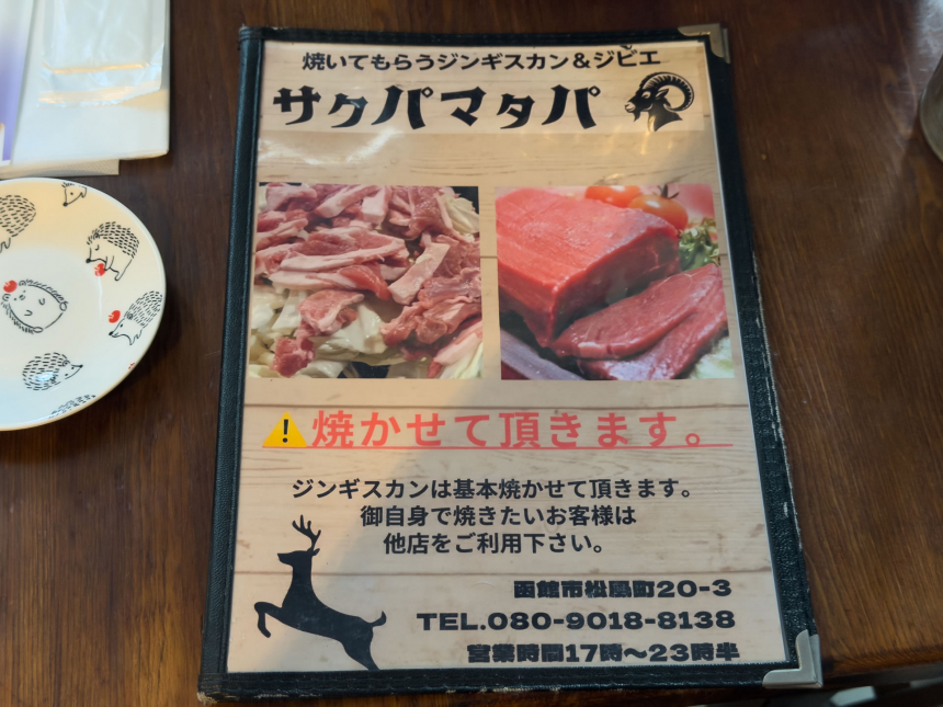 函館駅から歩いて5分ほど。大門横丁にほど近い松風町の一角に、「焼いてもらうジンギスカン&ジビエ サクパマタパ」があります。もともと「大門ひつじ亭 松風店」として営業していたお店が、2025年2月にリニューアルオープンし、現在の店名に生まれ変わりました。