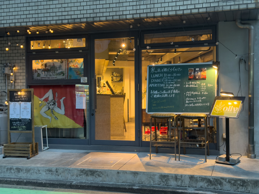 福岡市営地下鉄七隈線・別府駅から徒歩3分。住宅街の一角にあるガラス張りの小さなお店が「OLLY Befu kitchen(オーリー ベフ キッチン)」です。カウンター4席とテーブル席を合わせ、店内は約16席。夫婦で営むこのイタリアンレストランでは、豊前ジビエセンターから届く猪や鹿を中心に、九州の旬の食材を使った料理が楽しめます。