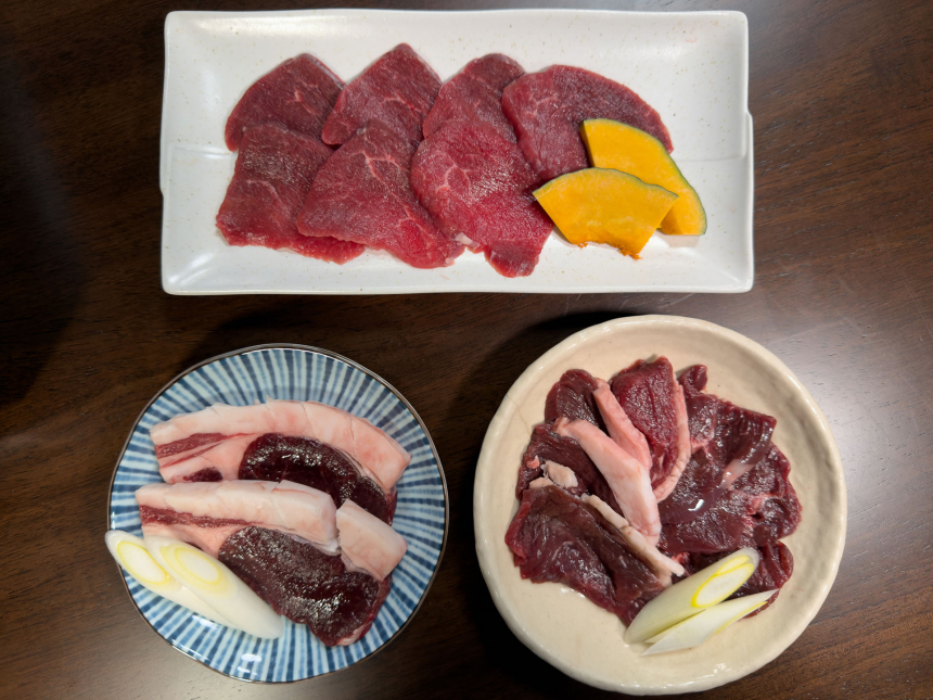 鹿背ロースと並んで注文したいのが、「鹿ランプ(写真・右下)」(1,045円・税込)と「鹿モモ(写真・上)」(880円・税込)です。同じ鹿肉でありながら、部位による味わいの違いがはっきりと感じられます。
