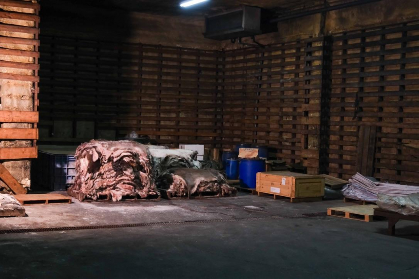 こちらは皮の保管庫。有害捕獲され食肉処理施設に持ち込まれた個体から剥皮したもので、これまで廃棄されていた皮を引き取っています。