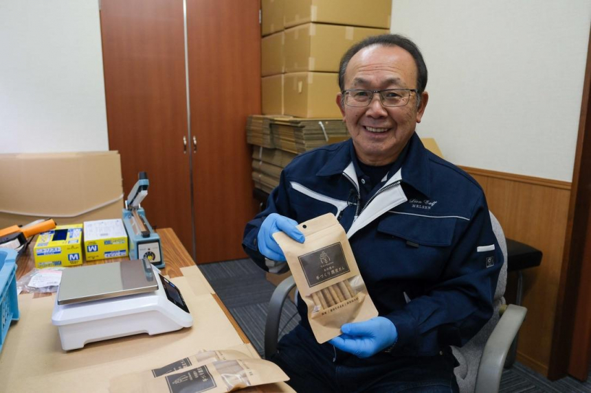 「手づくり鹿皮ガム 」は新規事業なので梱包・出荷作業は社長が担っているとのこと。